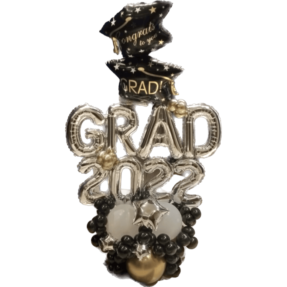 -Two layered balloon base with black balloon clusters and mini stars.