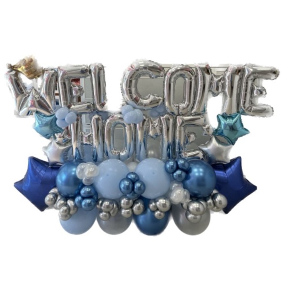 -18” Silver welcome home letters with mini gold crown.